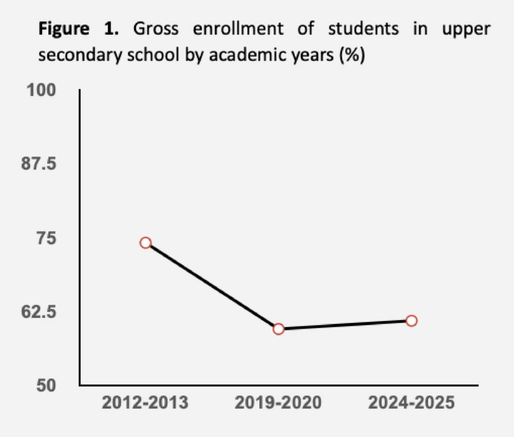 3. Gross enrollment in upper secondary schools has declined. The number of students dropping out of compulsory education has increased at the upper secondary level.